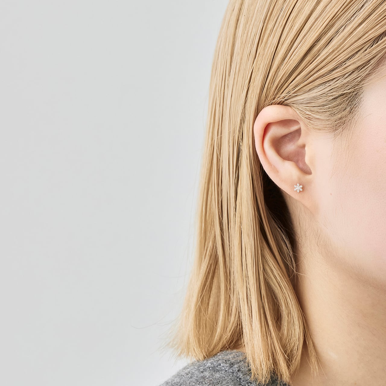 雪の結晶をモチーフとしたスタッドピアス。