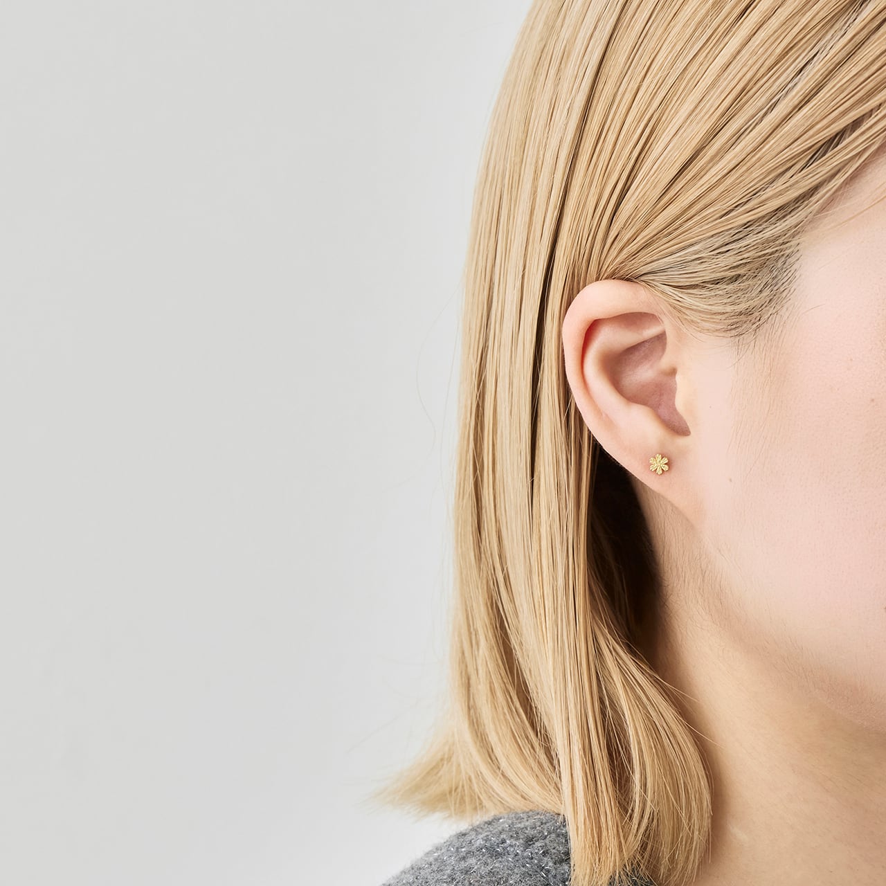 このピアスは小さい方のサイズのため、とてもさりげない存在感。暖かい色味と輝きが特徴の18金イエローゴールド素材です。
