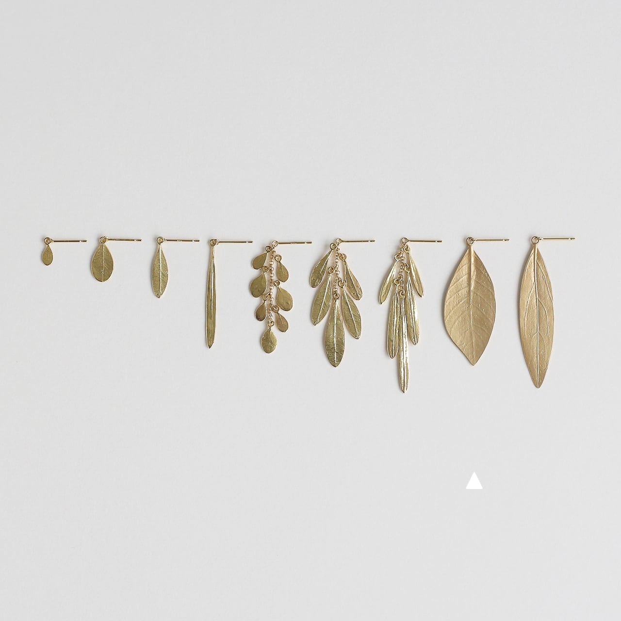 ピアス・イヤリングは木の葉の種類、数、組み合わせ方の異なる9種類のバリエーションがあります。